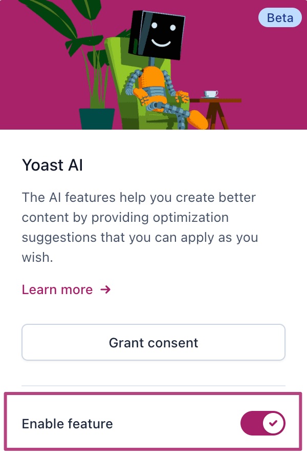 Before you can start using the Yoast AI features, you will need to grant consent and enable the feature. Follow the instructions below to start using the generator.