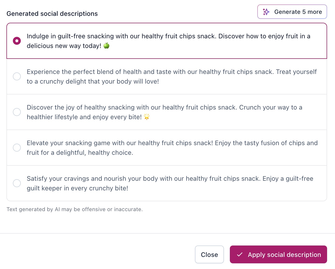 - Choose to Apply your suggestion or click Generate 5 more for other options