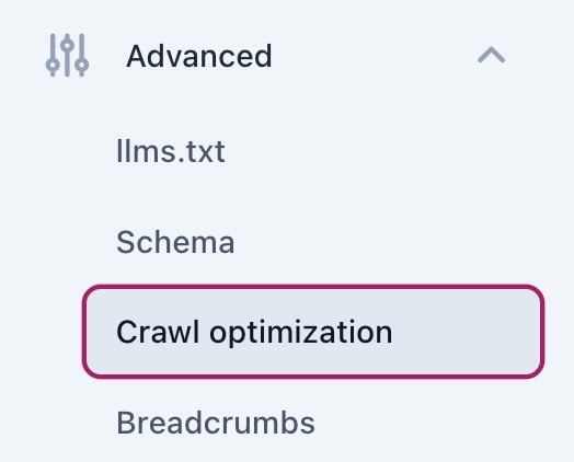 - Under Advanced, go to Crawl optimization