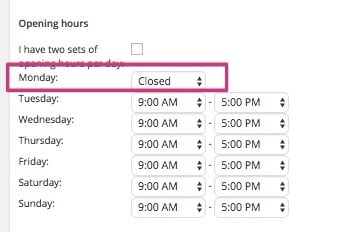 The next tab (both for single and multiple locations) is the Opening hours tab. The options differ for Opening hours for a single location and Opening hours for multiple locations.