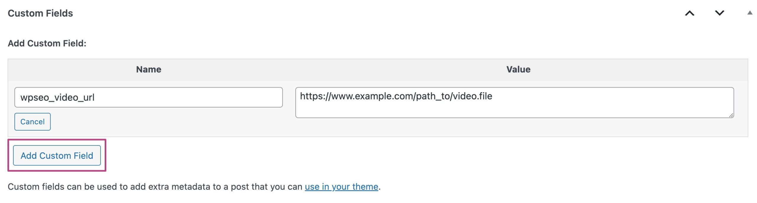 After you created the custom field, you can add it to Yoast SEO and Video SEO, and its content will be analyzed by the plugins. To do that, follow the steps in these guides: