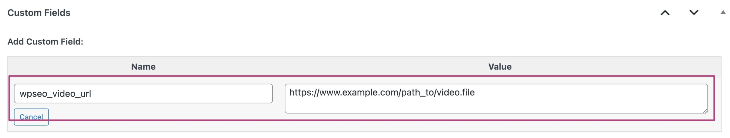 Video SEO: Copy the key of the custom field that has the video URL or ID in it and enter it into the Video SEO plugin settings.