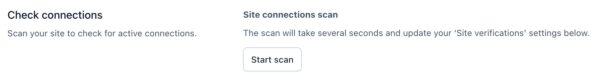 Under Site connections, click Start scan to connect your site to various webmaster tools. This will allow you identify existing search engine verifications or get instructions on how to establish such verifications.