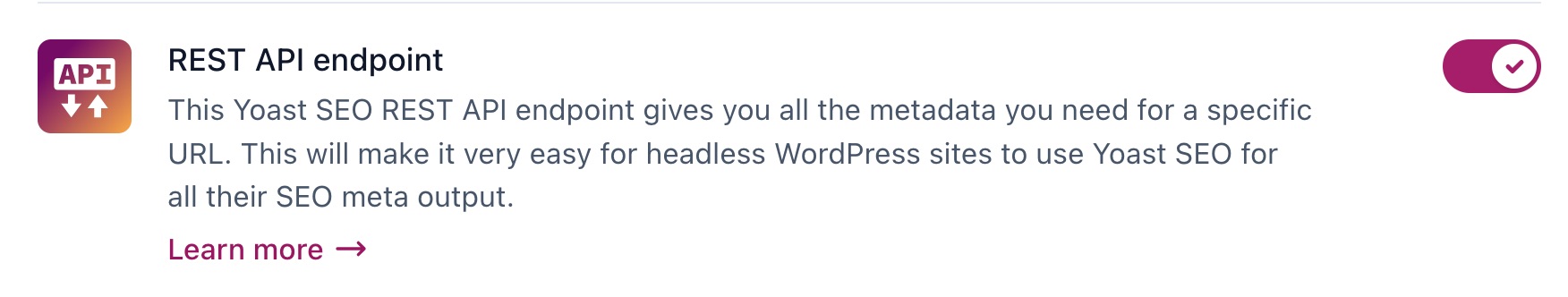In Yoast SEO 14.0, we introduced a REST API endpoint that will give you all the necessary metadata for a specific URL. This makes it easier for headless WordPress sites to use Yoast SEO for their SEO meta output. In this article, we’ll explain how to disable or enable this feature in the Yoast SEO plugin.