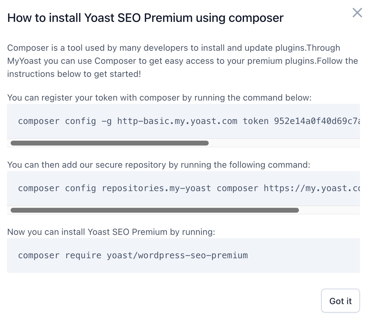 - Follow the instructions under How to install Yoast SEO Premium using composer