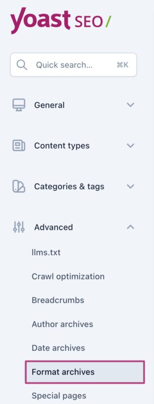 In this article, we’ll discuss the Format archives settings in Yoast SEO in your WordPress backend.