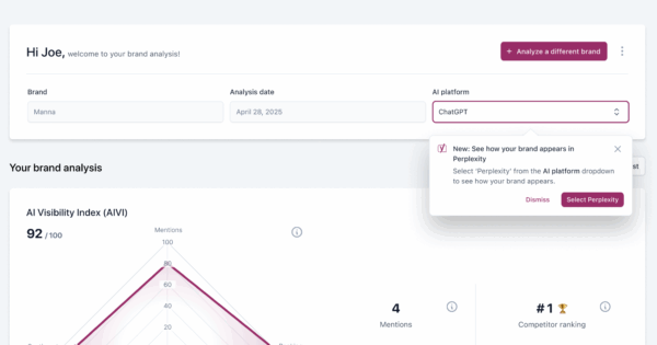 AI Brand Insights now lets you see when and how your brand appears in AI generated answers for relevant search style queries. You can track sentiment, and compare your visibility to competitors. By adding support for Perplexity, you get a broader view of how AI systems describe your brand and which sources they rely on, helping you stay visible and confidently represented in AI driven discovery Â